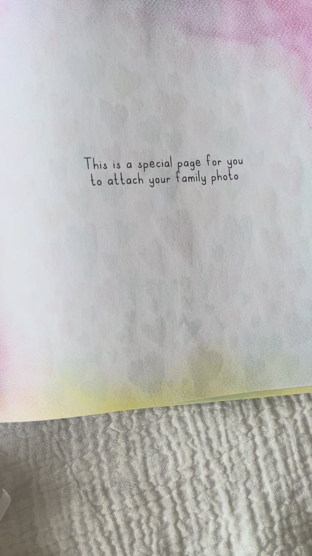 There are two special pages for you to personalise your little one's storybook - one for their ultrasound image, and another for your first family photo together.